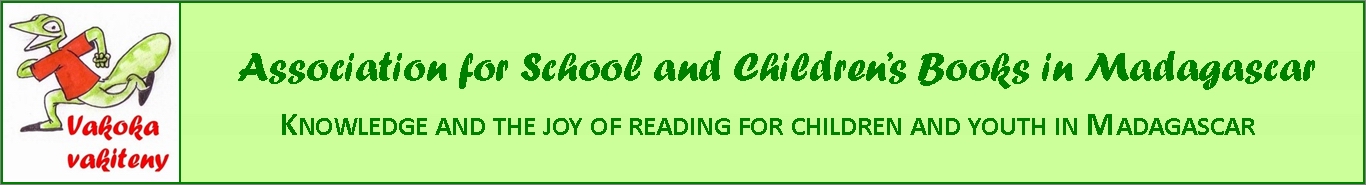 Association for School and Children’s Books in Madagascar Vakoka Vakiteny publishes a newsletter at least every three months. Please send us an e-mail if you want to receive it automatically. You can also download all our newsletters here. |